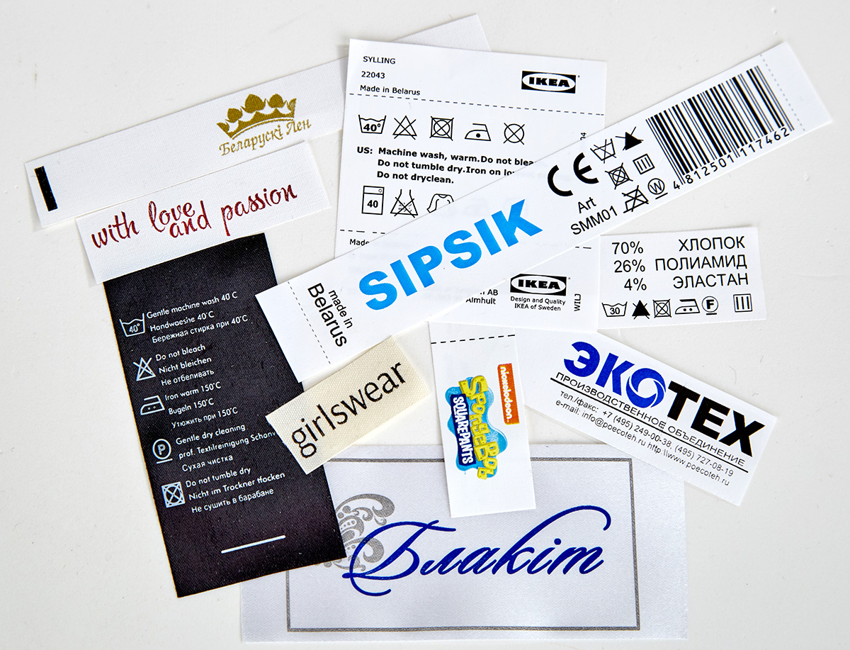 Мы производим ярлыки на собственном оборудовании либо методом Hot stamping, либо методом цифровой печати. Сочетание этих двух методов позволяет получить высокачественные ярлыки с хорошей проработкой деталей, устойчивые к многократным стиркам и глажкам. Помимо вшивных ярлыков предлагаем также сатиновые ленты с Вашим логотипом. Такие ленты позволят придать Вашему подарку или товару законченный вид и выделят его среди других, связав его с Вашим брендом. Типография «Плутос» принимает заказы на изготовление ярлыков для одежды всех видов, в том числе – нестандартных форм и размеров.